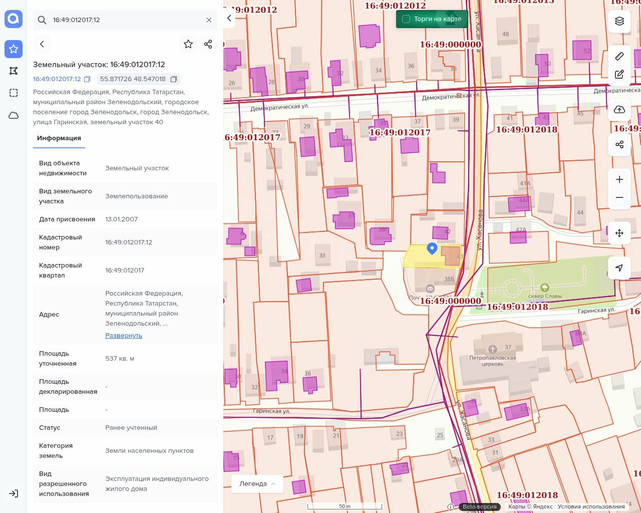 Адрес: Татарстан Респ, муниципальный район Зеленодольский, городское поселение город Зеленодольск, улица Гаринская, земельный участок 40