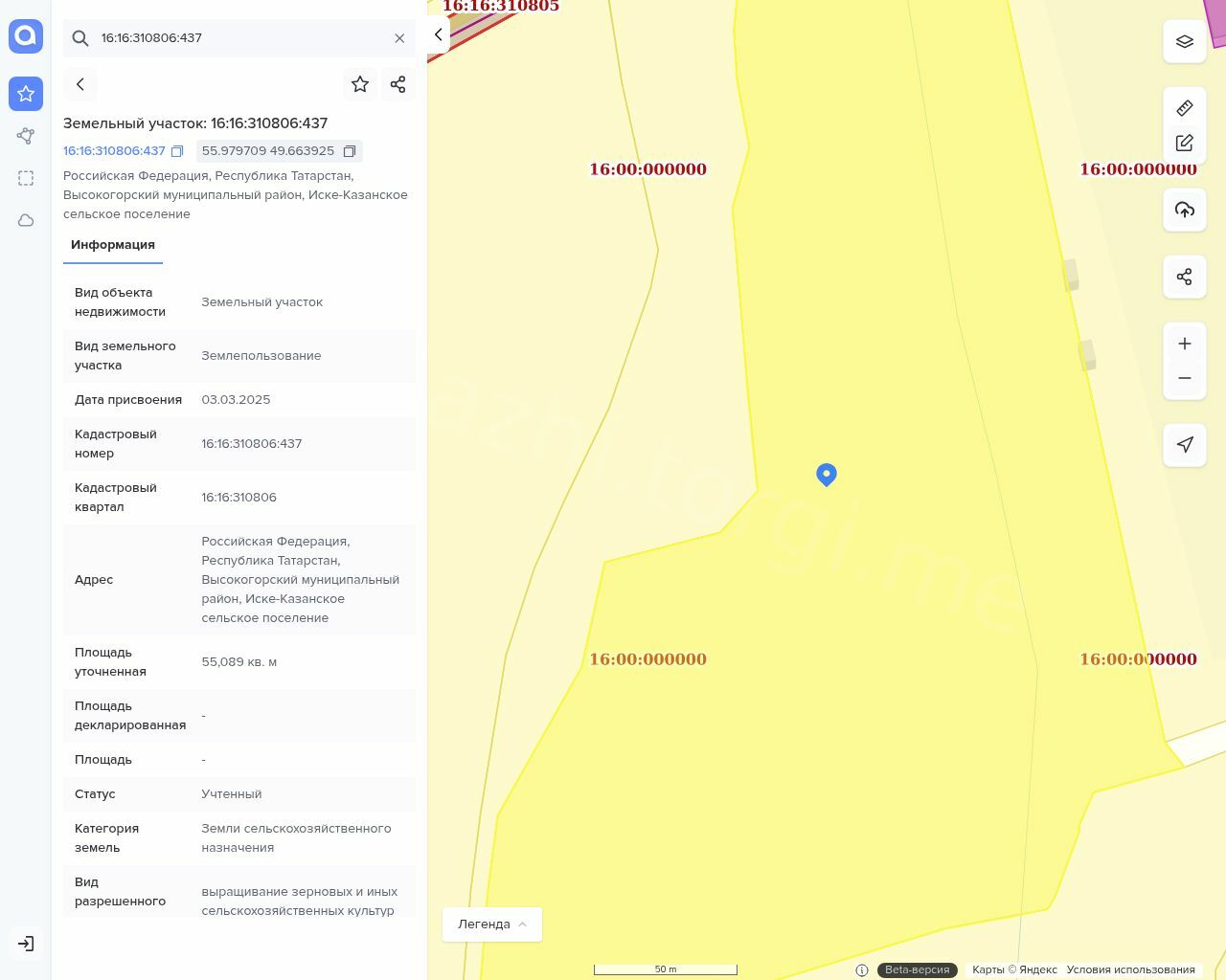 Кадастровый номер земельного участка: 16:16:310806:437