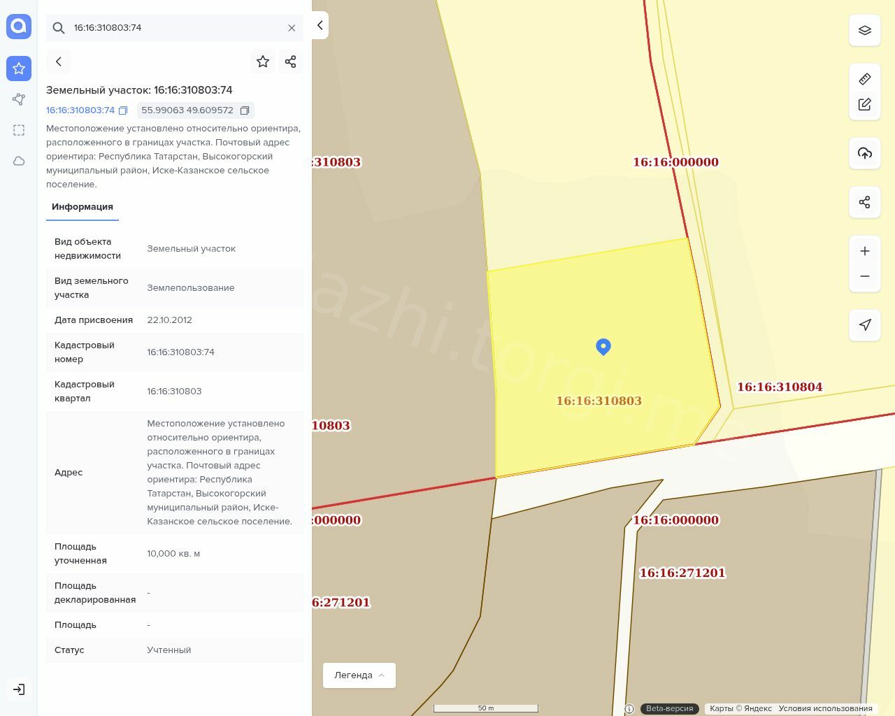 Кадастровый номер земельного участка: 16:16:310803:74