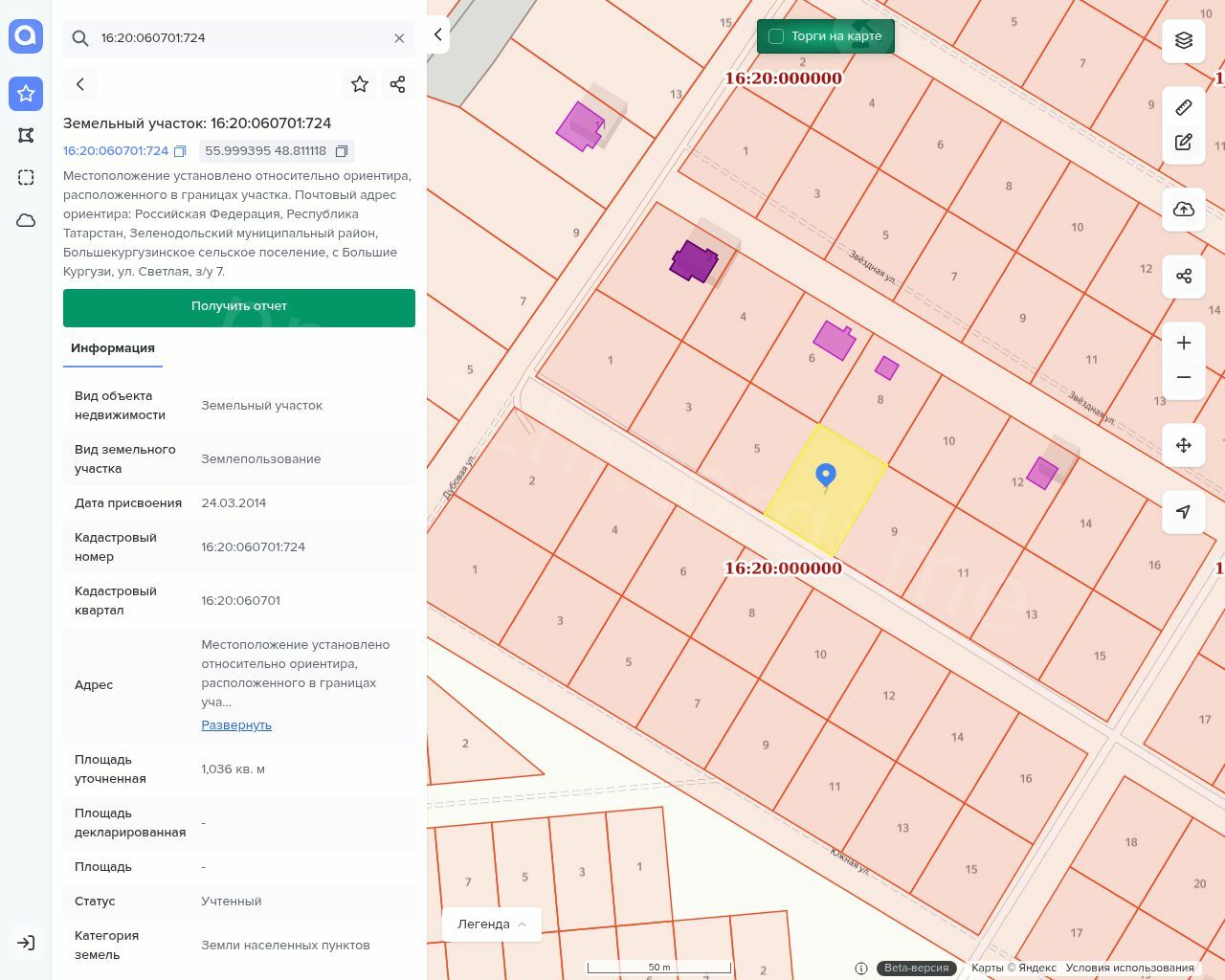 Кадастровый номер земельного участка: 16:20:060701:724