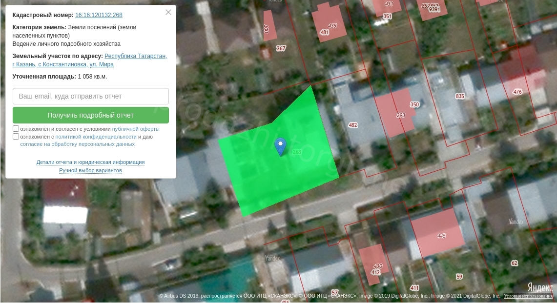 Земельный участок с кадастровым номером 16:16:120132:268 площадью 1058+/-11 кв.м.