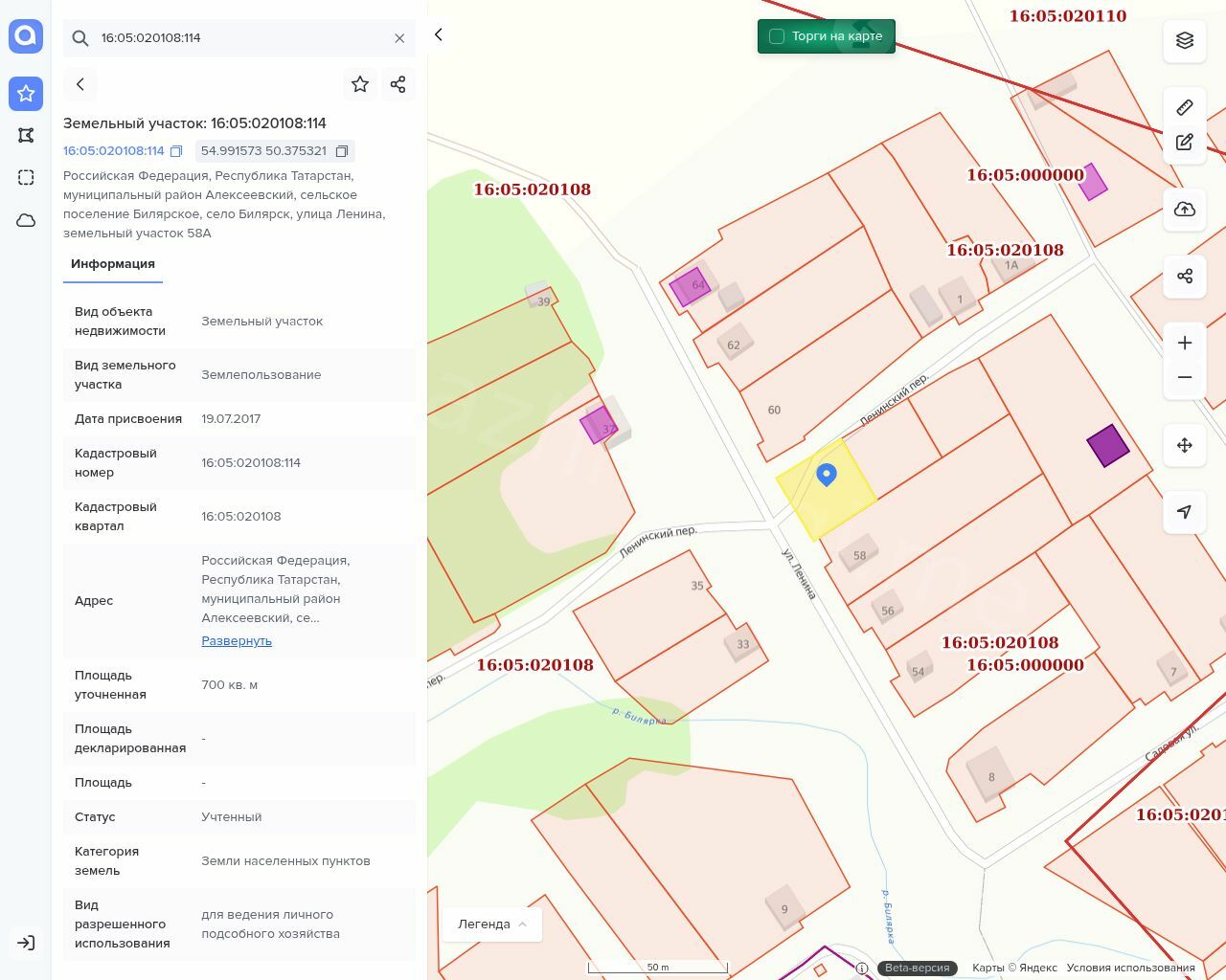 Адрес: Российская Федерация, Республика Татарстан, муниципальный район Алексеевский, сельское поселение Билярское, село Билярск, улица Ленина, земельный участок 58А