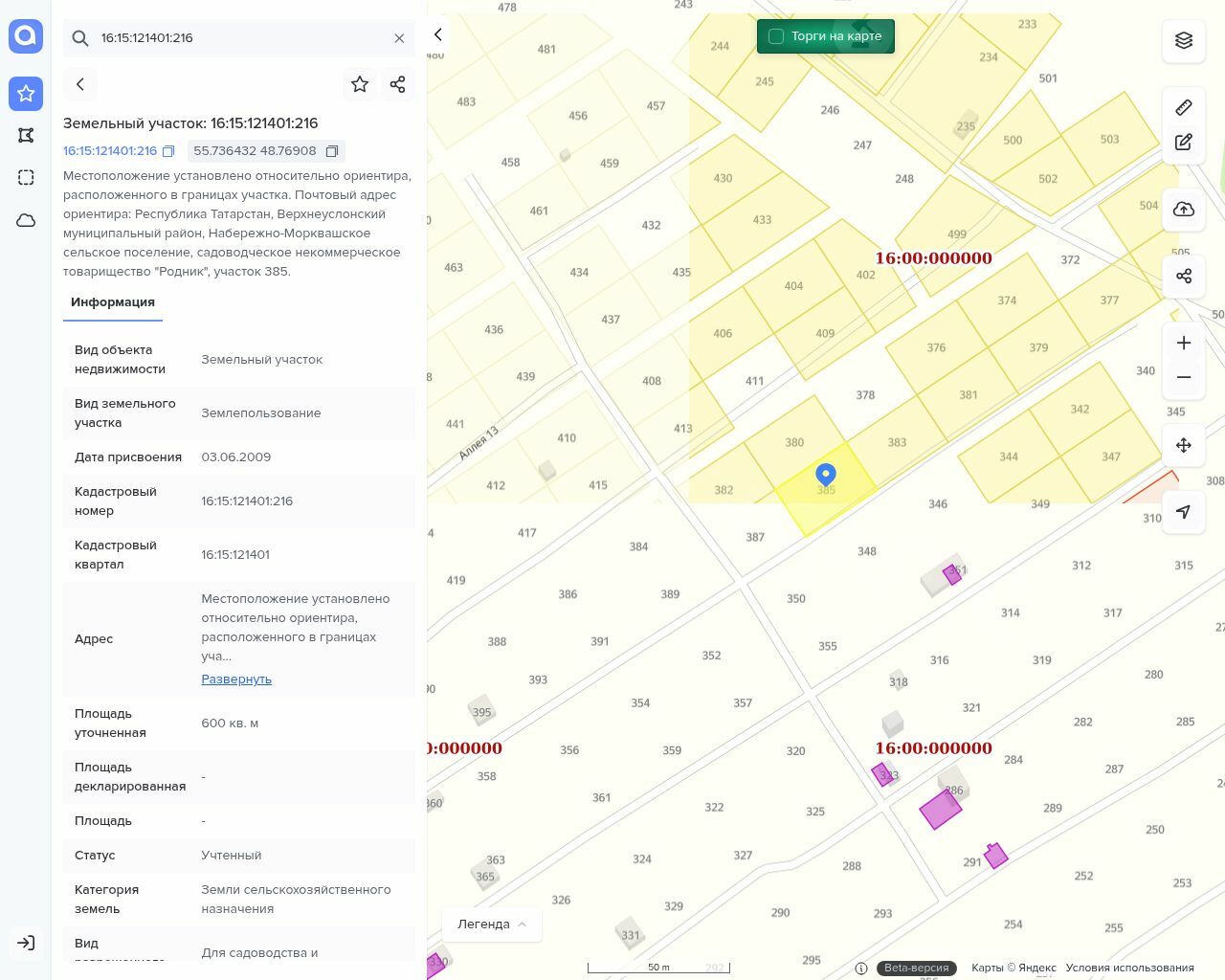 Лот 1 – Земельный участок Кадастровый номер: 16:15:121401:216 Площадь: 600 кв.м Категория земель Земли сельскохозяйственного назначения Виды разрешенного использования объекта недвижимости: Для садоводства и огородничества Границы определены. Собственность.